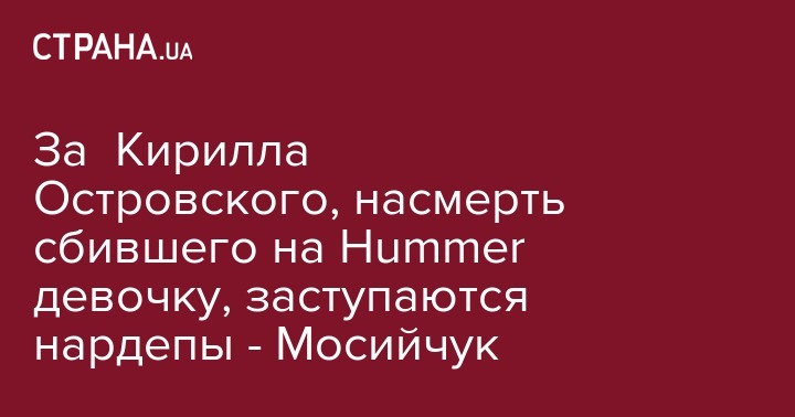 Сразу несколько народных депутатов вступились за мажора Кирилла Островского, который на своем Hummer насмерть сбил девочку на бульваре Леси Украинки в Киеве. Об этом на своей странице в Facebook написал нардеп-радикал Игорь Мосийчук.