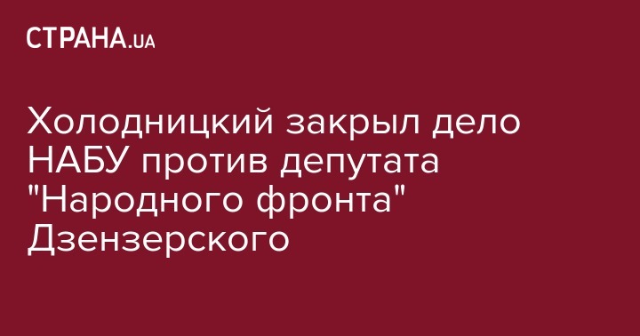 Холодницкий закрыл дело НАБУ против депутата "Народного фронта" Дзензерского