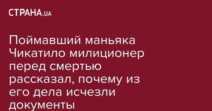 Поймавший маньяка Чикатило милиционер перед смертью рассказал, почему из его дела исчезли документы