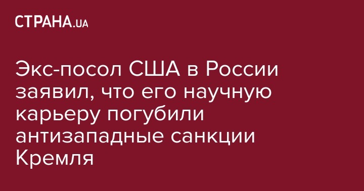 Экс-посол США в России заявил, что его научную карьеру погубили антизападные санкции Кремля