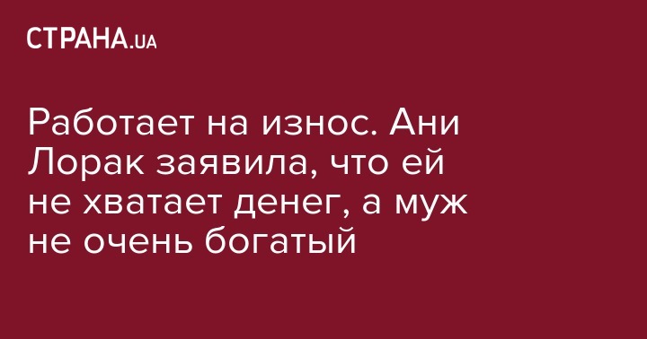 Популярная поп-исполнительница Ани Лорак заявила, что ей приходиться работать на износ из-за нехватки денег.