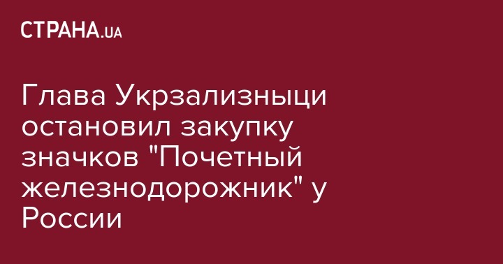 И.о. руководителя правления ПАО "Укрзализныця" Евгений Кравцов поручил остановить процедуру закупки наградных знаков "Почетный железнодорожник" у административно-хозяйственного управления ОАО "Российские железные дороги" и ратует за пересмотр украинской стороной соглашения о награждении этим знаком, сообщает пресс-служба госкомпании.
