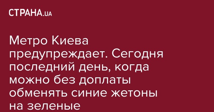 В Киевском метрополитене сегодня, 31 июля, последний день, когда можно обменять синие жетоны на зеленые без доплаты. Об этом идет речь в сообщении пресс-службы киевского метрополитена в соцсети Facebook.