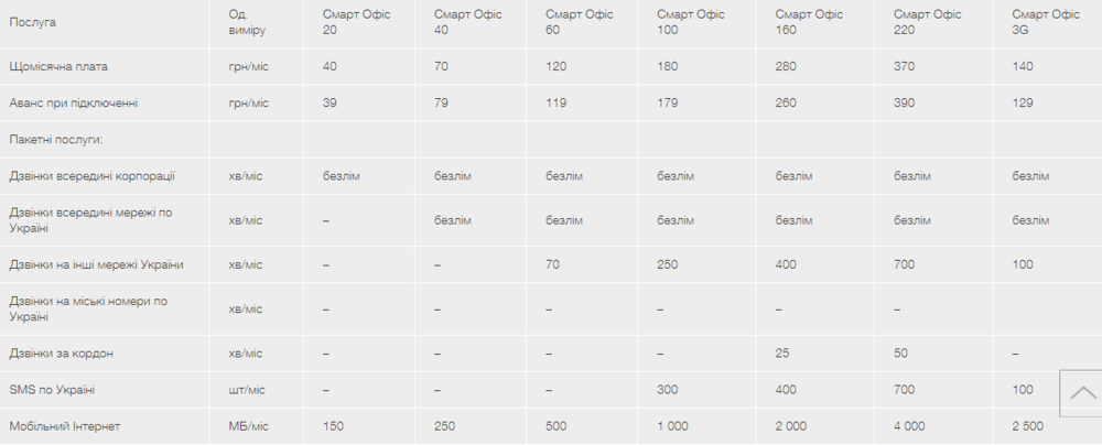 В частности оператор закрывает две линейки тарифов: "Офис 30+/50+/90+/150+", "Офис 10/20/30/40/50/80/90". Для абонентов этих тарифов цены вырастут более чем в 2 раза. Например, абонентам с тарифом "Офис 30+" придется платить 70 гривен, а абонентам с тарифов "Офис 50" - 110 гривен.