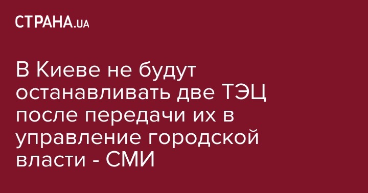 В Киеве не будут останавливать две ТЭЦ после передачи их в управление городской власти - СМИ