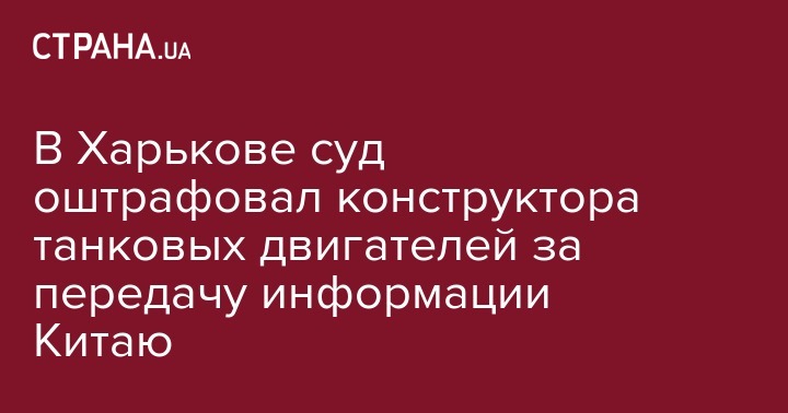 В Харькове оштрафовали на 3400 гривен пенсионера-конструктора танковых двигателей, который передал Китаю информацию за 40 тысяч юаней.