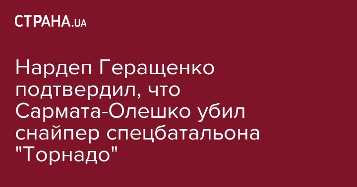 Нардеп фракции "Народный фронт", член коллегии МВД Украины Антон Геращенко подтвердил информацию, что убийца участника АТО Виталия Олешко (позывной "Сармат") ранее был снайпером из отряда милиции особого назначения "Торнадо" и также участвовал в АТО. Об этом сообщает 112 Украина.