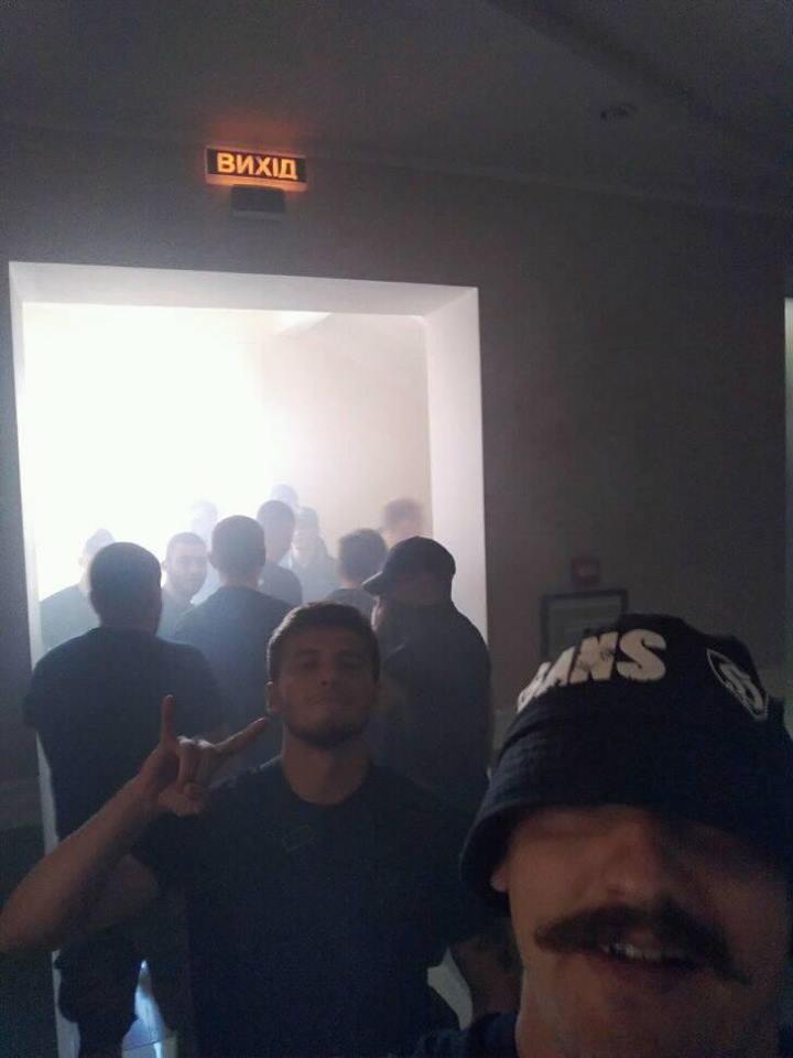 Члены Нацкорпуса бросили дымовые шашки и коридоры облпрокуратуры заволокло дымом. В здании сработала пожарная сигнализация, передает херсонский сайт 0552.ua.