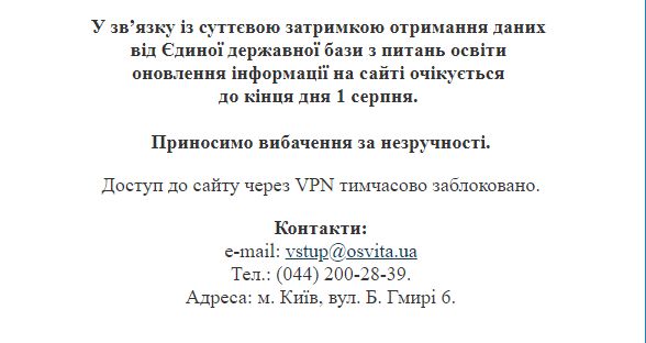 Был недоступен сайт vstup.osvita.ua с информацией для абитуриентов вузов и рейтинговыми списками, сложно также войти в личные электронные кабинеты.