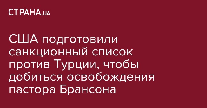 США подготовили санкционный список против Турции, чтобы добиться освобождения пастора Брансона