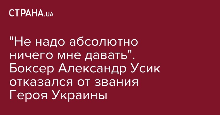 Украинский боксер Александр Усик отказался от предложения премьера Владимира Гройсмана ходатайствовать перед президентом Украины Петром Порошенко о присвоении спортсмену звания Героя Украины за победу над российским боксером Муратом Гассиевым.