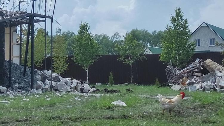 Остатки дома престарелых в Литочках и выживший петух, фото: Страна