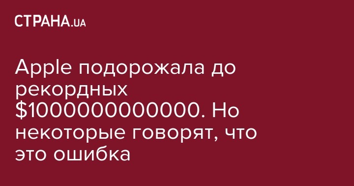 Apple подорожала до рекордных $1000000000000. Но некоторые говорят, что это ошибка