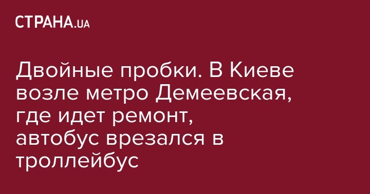 Двойные пробки. В Киеве возле метро Демеевская, где идет ремонт, автобус врезался в троллейбус