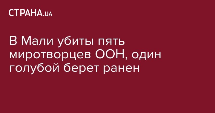 В ООН заявляют, что пять миротворцев международной миссии в Мали были убиты и один "голубой берет", тяжело ранен в результате нападения неподалеку от города Севаре 29 мая. Как говорится в сообщении, сначала их автомобиль был обстрелян неизвестными, а потом подорвался на мине.