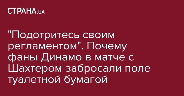 Фаны "Динамо" во время матча с "Шахтером" на НСК "Олимпийский" провели акцию протеста. Сначала они вывесили баннер "Подотритесь своим регламентом", после чего забросали газон поля огромным количеством туалетной бумаги.