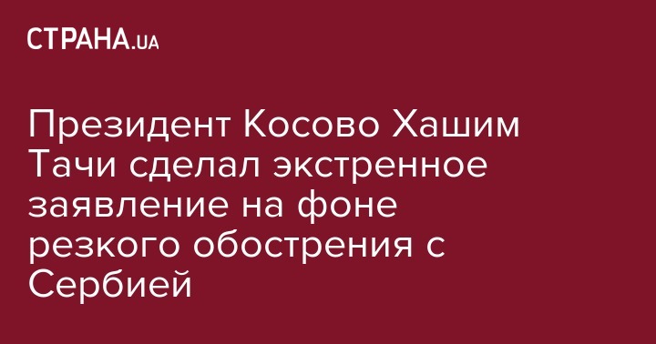 Президент Косово Хашим Тачи выступил с обращением к общественности на фоне растущей напряженности в отношениях с Сербией. Он заявил, что "будет неукоснительно выполнять обязательства по поддержанию мира".