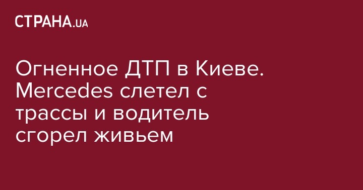 Огненное ДТП в Киеве. Mercedes слетел с трассы и водитель сгорел живьем