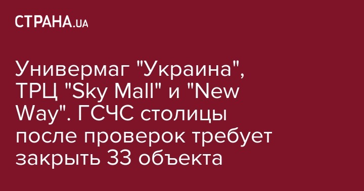 Универмаг "Украина", ТРЦ "Sky Mall" и "New Way". ГСЧС столицы после проверок требует закрыть 33 объекта