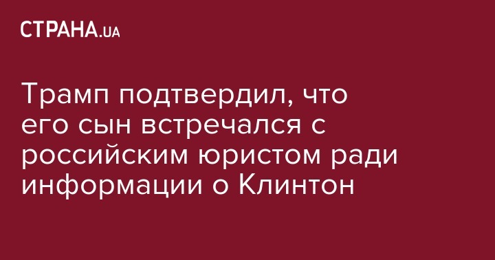 Президент США Дональд Трамп заявил, что его сын Дональд Трамп-младший встречался с представителями России в Нью-Йорке в 2016 году, чтобы получить данные об оппонентке отца на выборах - Хиллари Клинтон.