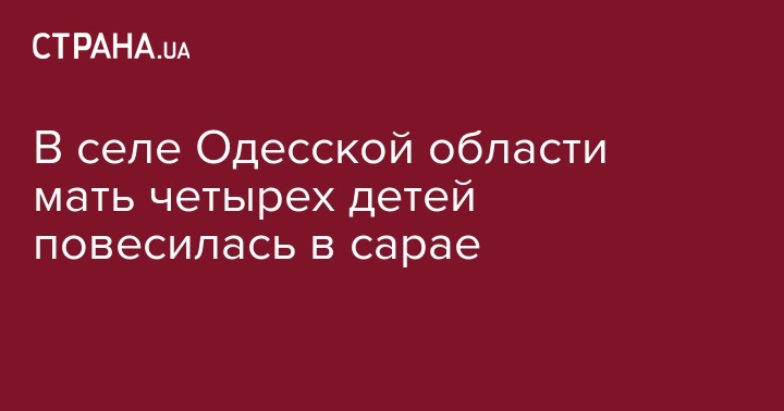 В Ивановском районе Одесской области совершила самоубийство мать четверых детей. Как сообщили в Главном управлении Национальной полиции в Одесской области, ЧП произошло в ночь на 6 августа в селе Марьяновка.