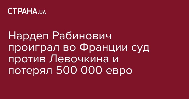 Суд большой инстанции Ниццы удовлетворил иск компаний, связанных с нардепами Юлией и Сергеем Левочкиными, против лидера партии "За життя" нардепа Вадима Рабиновича и постановил взыскать с него судебные и прочие затраты на сумму более полумиллиона евро.