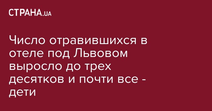 Количество отравившихся в отеле в с.Раковец (Львовская обл.) возросло до 30 человек, среди них – 29 детей; госпитализированы 25 пострадавших, сообщает Главное управление Государственной службы Украины по вопросам безопасности пищевых продуктов и защиты потребителей (Госпродпотребслужба) в области.