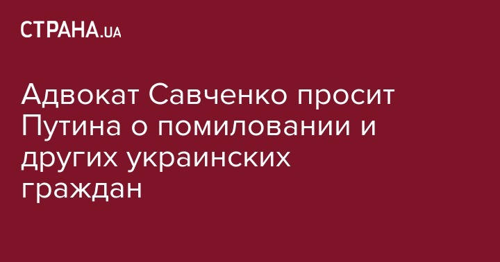 Адвокат украинской летчицы и народного депутата Надежды Савченко Марк Фейгин обратился к президенту Путину с открытым письмом, в котором просит помиловать и других украинских граждан,  осужденных в России, передает "Интерфакс-Украина".