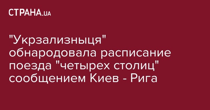 "Укрзализныця" обнародовала расписание поезда "четырех столиц" сообщением Киев - Рига