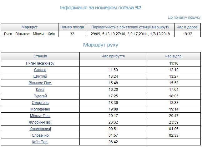 Поезд "четырех столиц" Киев-Минск-Вильнюс-Рига №31/32 будет выезжать из Киева в 14:07 и проводить в пути 19 часов (в обратном направлении - еще на полчаса дольше). Расписание движения опубликовала пресс-служба "Укрзализныци".