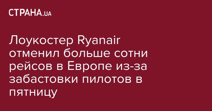 Лоукостер Ryanair отменил больше сотни рейсов в Европе из-за забастовки пилотов в пятницу