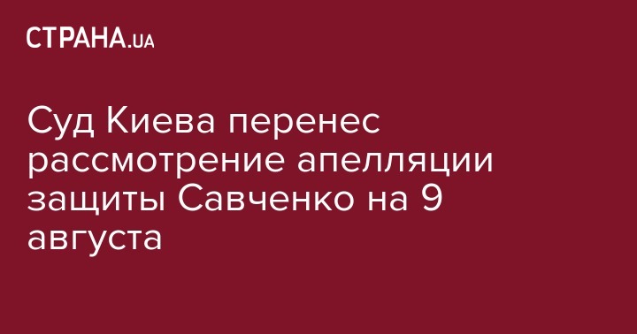 Суд Киева перенес рассмотрение апелляции защиты Савченко на 9 августа