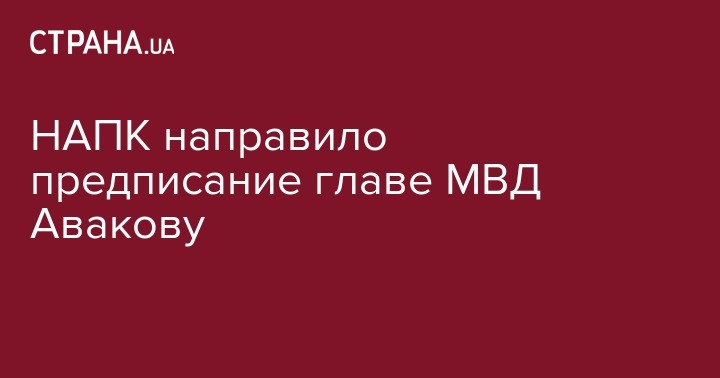 Национальное агентство по предупреждению коррупции (НАПК) по результатам плановых проверок вынесло предписание министру внутренних дел Украины Арсену Авакову, сообщает пресс-служба НАПК.