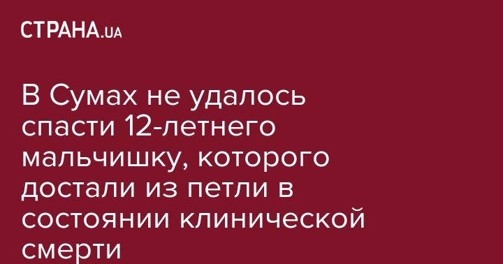 В Сумах в состоянии клинической смерти был найден дома 12-летний мальчик с веревкой на шее. Об этом сообщает пресс-служба региональной Нацполиции.