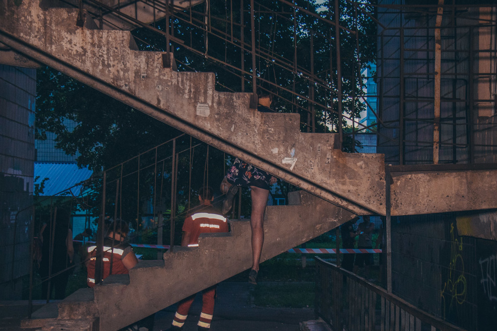 Трагедия произошла накануне, 8 августа, около 20:00. По словам местных жителей, перед самоубийством выпившая женщина пришла к мужчине, который проживает в этом доме. Соседи слышали, как они ссорятся. После этого женщина вышла на улицу, а через некоторое время ее обнаружили между лестничными пролетами первого и второго этажа. Медики, прибывшие на вызов, лишь констатировали смерть женщины.