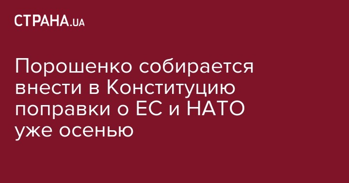 "Изменения в Конституцию в части закрепления наших амбиций о вступлении Украины в Европейский Союз и НАТО давно назрели. Мною подготовлены поправки в Основной закон, которые я подам на рассмотрение украинского парламента с началом нового политического сезона", - написано на странице главы государства в Фейсбуке в четверг, 9 августа.