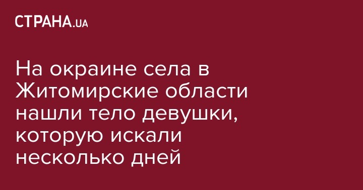 На окраине с. Бондарцы Житомирского района 8 августа обнаружили тело 20-летней девушки, которую разыскивали 2 дня. Об этом говорится в сообщении  полиции области.