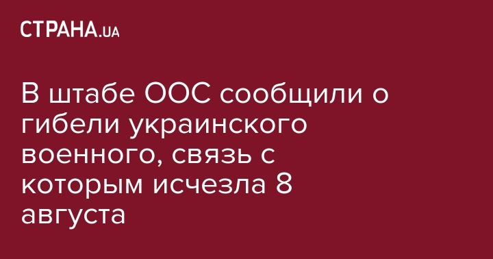 В штабе ООС сообщили о гибели украинского военного, связь с которым исчезла 8 августа