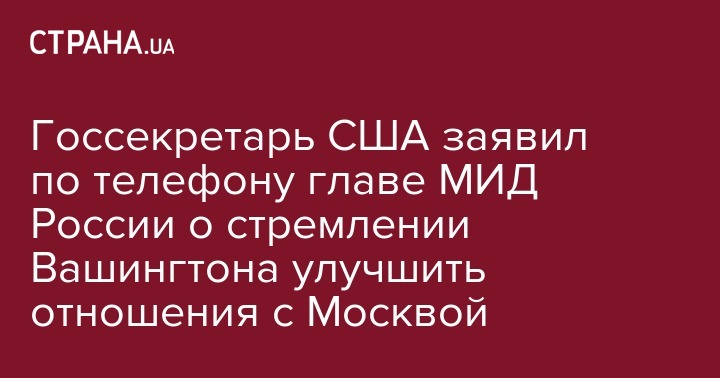 Госсекретарь США Майкл Помпео заявил в пятницу министру иностранных дел России Сергею Лаврову о стремлении Вашингтона улучшить отношения с Москвой.
