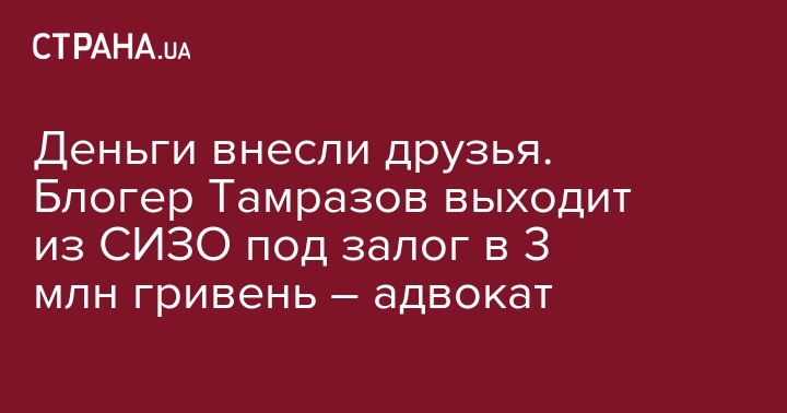 Деньги внесли друзья. Блогер Тамразов выходит из СИЗО под залог в 3 млн гривень – адвокат