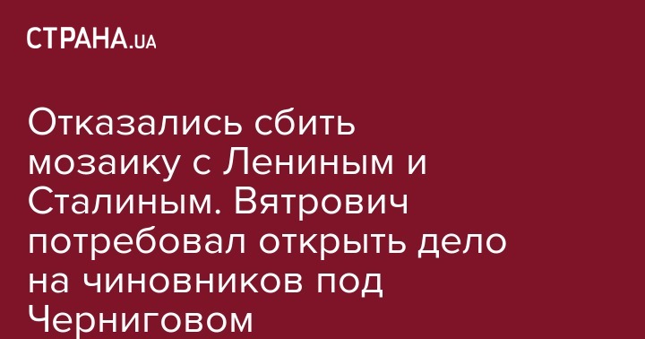 Украинский институт национальной памяти (УИНП) просит Генеральную прокуратуру и Нацполицию расследовать отказ от демонтажа мозаичных изображений Владимира Ленина и Иосифа Сталина на водонапорной башне в центре городе Новгороде-Северском Черниговской области. Об этом сообщается на сайте УИНП.