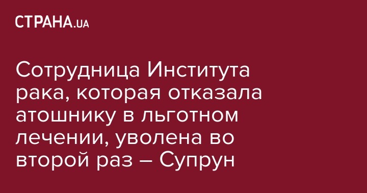 Сотрудница Института рака, которая отказала атошнику в льготном лечении, уволена во второй раз – Супрун
