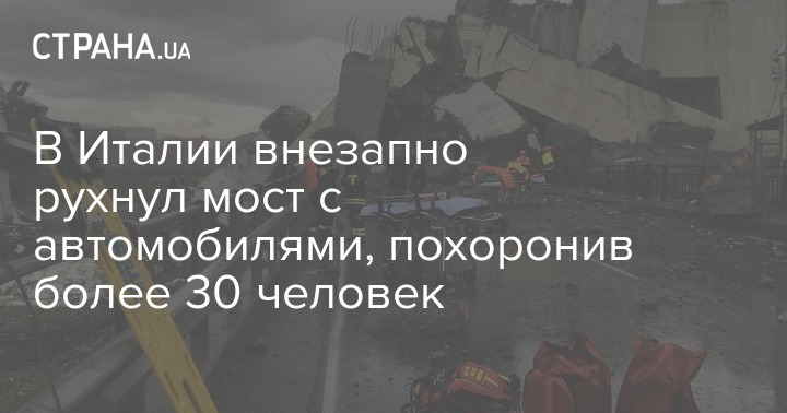 Во вторник, 14 августа, возле итальянской Генуи внезапно обрушился автомобильный мост. В это время по нему проезжал транспорт. В момент трагедии автомобили и люди также находились под мостом. Инцидент произошел на автостраде А10.
