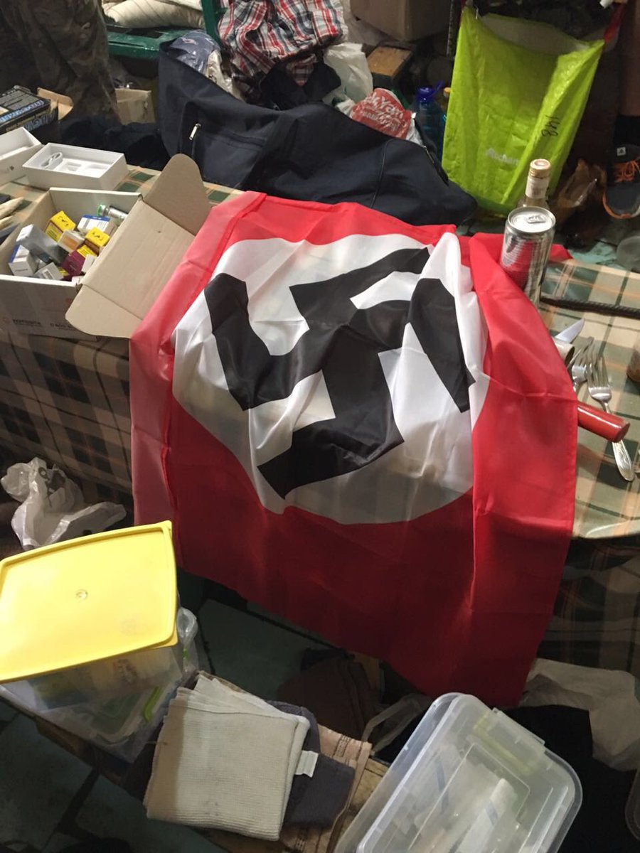 Пресс-секретарь Юрия Луценко Лариса Сарган опубликовала фото обысков в камерах, где находились осужденные "торнадовцы". В камерах был обнаружен нацистский флаг, алкоголь, ножи, молотки и биты. Об этом она написала в Twitter.