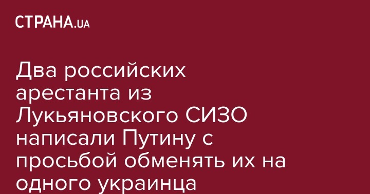 Содержащиеся в Лукьяновском СИЗО (Киев) граждане Российской Федерации Александр Саттаров и Фарух Камалов написали на имя президента РФ Владимира Путина заявления с просьбой вернуть их в Россию путем обмена на одного из украинских политзаключенных, сообщила посетившая их украинский омбудсмен Людмила Денисова.