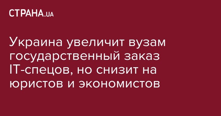 "Резко вырастет государственный заказ в сфере IT. Мы предлагаем более тысячи дополнительных мест госзаказа на IT-специальности. Сокращен будет Госзаказ на юристов, экономистов", - сказала она на брифинге в Киеве в понедельник.