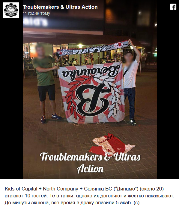 О драке сообщили киевские ультрас из группировки "Troublemakers & Ultras Action" на своей странице в Facebook.