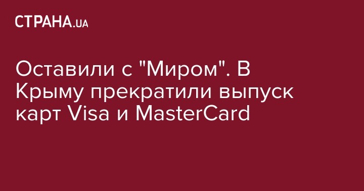 В Крыму перестали выпускать и обслуживать карты платежных систем Visa и MasterCard. Единственным банком, который делал это, был Генбанк, но теперь он сосредоточится на выпуске карты российской системы "Мир". Об этом сообщает ТАСС со ссылкой на представителя кредитной организации.