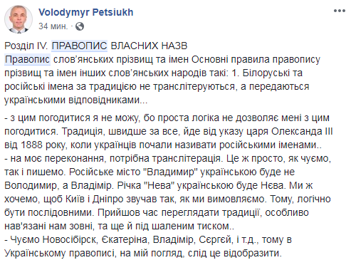 Так, под шквал критики попала норма, предлагающая заменять российские и белорусские имена "украинскими аналогами".