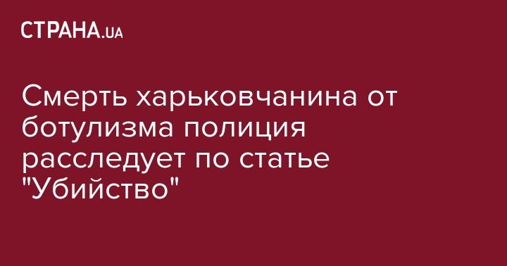Полиция начала уголовное производство по факту смерти 42-летнего харьковчанина от ботулизма по статье "Убийство". Об этом сообщает Интерфакс.